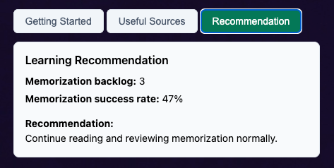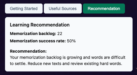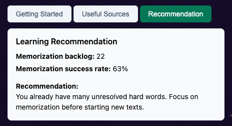 - Memorization Backlog — how many vocabulary contexts still need to be consolidated