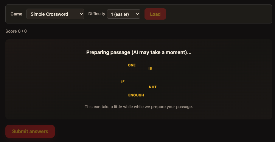 When you learn a language—or dig deeper into your own—memory is rarely about cramming lists. It is about meeting the same words again in situations that feel real. Our games turn that idea into something you can do in a few minutes: short, text-based challenges built around the words and passages you are already working with.