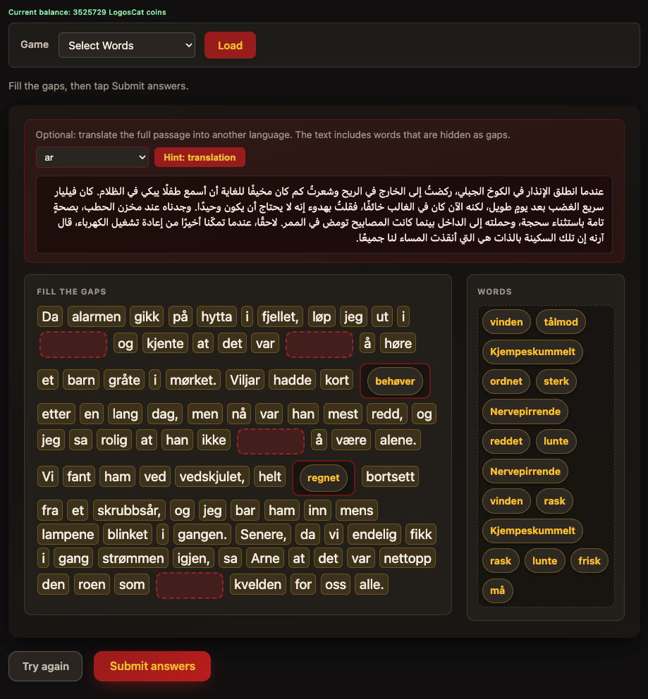 Think of a textual game as a conversation with a page of text—not a video game with controllers, but words you read, choose, or complete. You might fill gaps in a passage, work with words you have marked as “hard,” or get a gentle nudge when you need a hint. The screen stays calm; the thinking does the work.