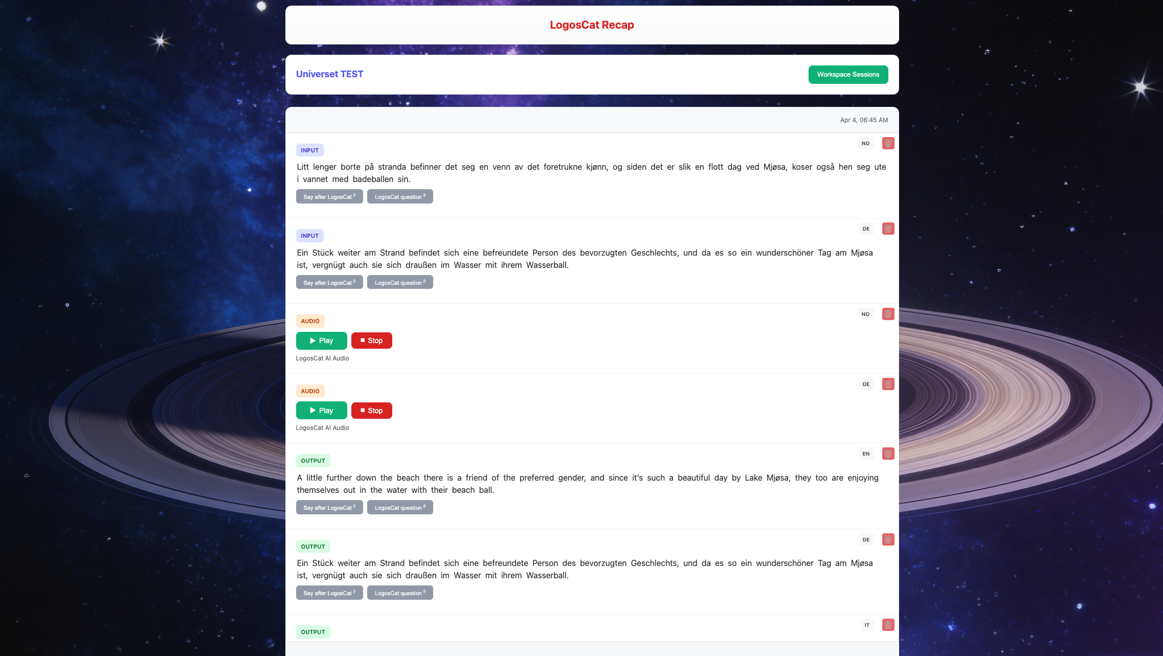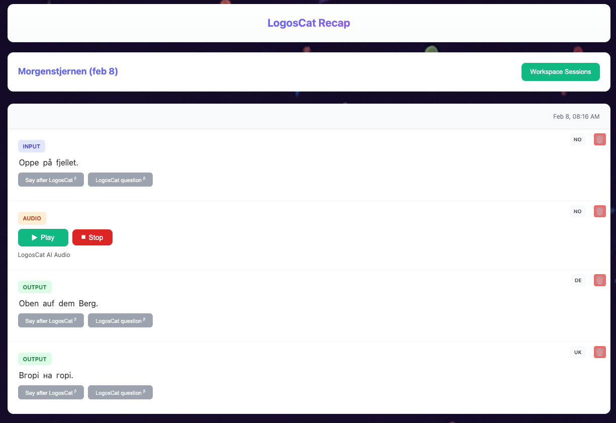 A huge part of learning is recap. On the Recap page, you can access your past sessions to read and listen.