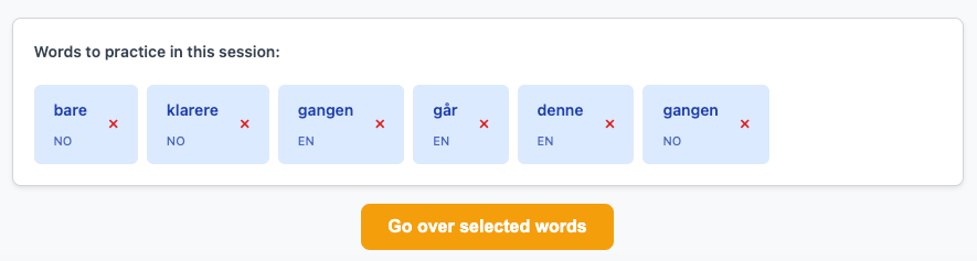 Then tap a button at the bottom of the recap page “Go over selected words”
